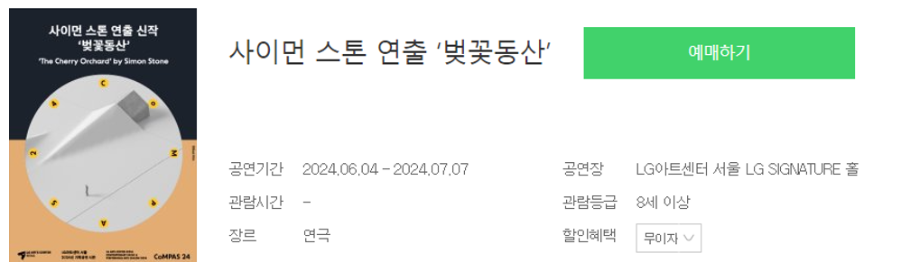 이번 벚꽃동산은 위대한 극작가 안톤 체호프의 유작으로 고전의 틀을 깨고 위리의 이야기로 새롭게 연출하려 노력하였으며, LG아트센터가 제작하는 이번 연극은 영국 내셔널 시어터부터 넷플릭스까지 활동하는 천재 연출가 사이먼 스톤의 첫 내한 작품으로 역대급 캐스팅이 많은 관객들의 이목을 집중시킬 예정이다.