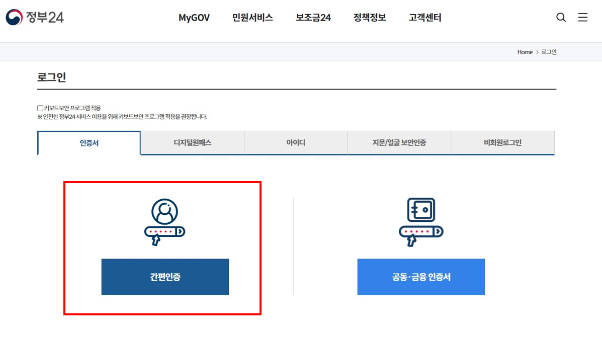 정부24 홈페이지 접속